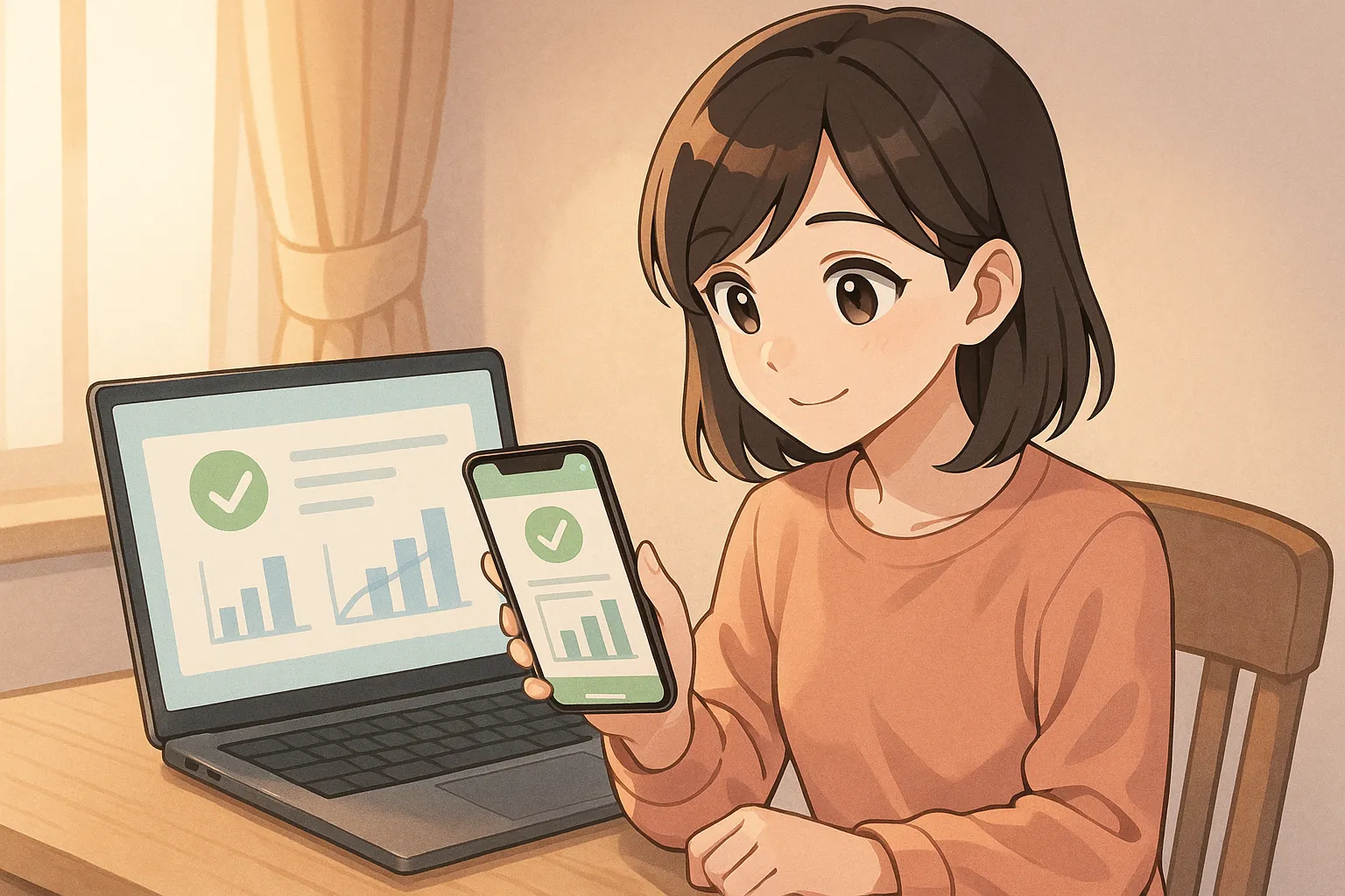 スマートフォンやパソコンのどちらからでも見られるようになり、操作はとてもシンプルです。